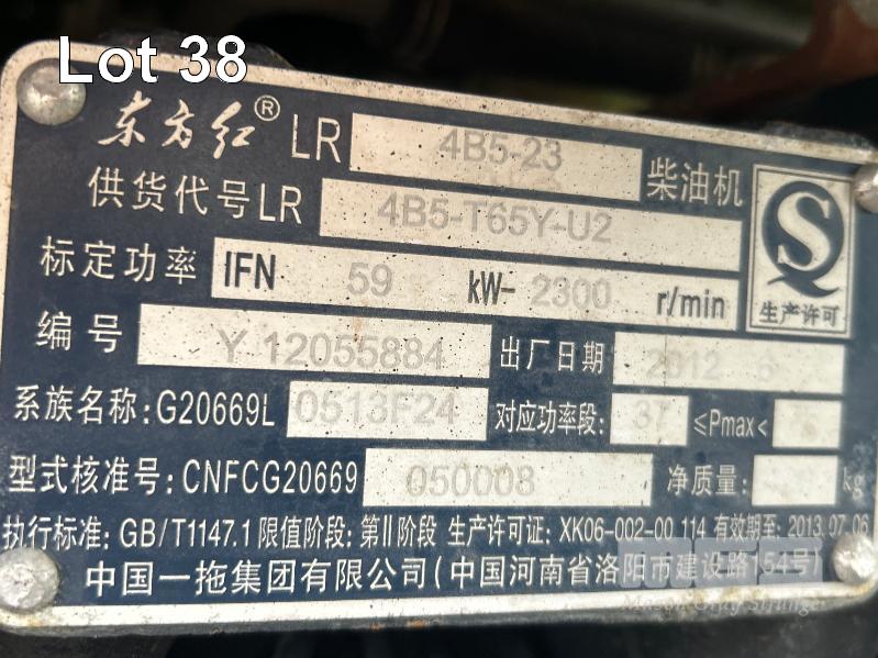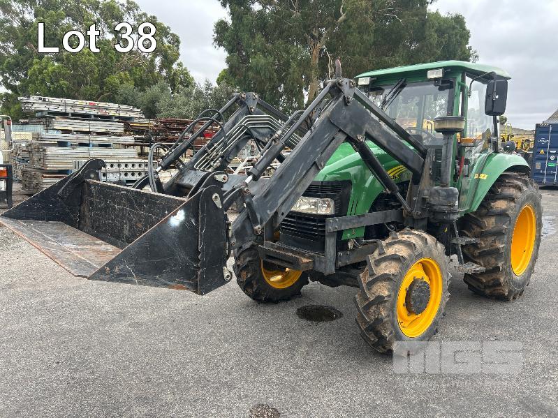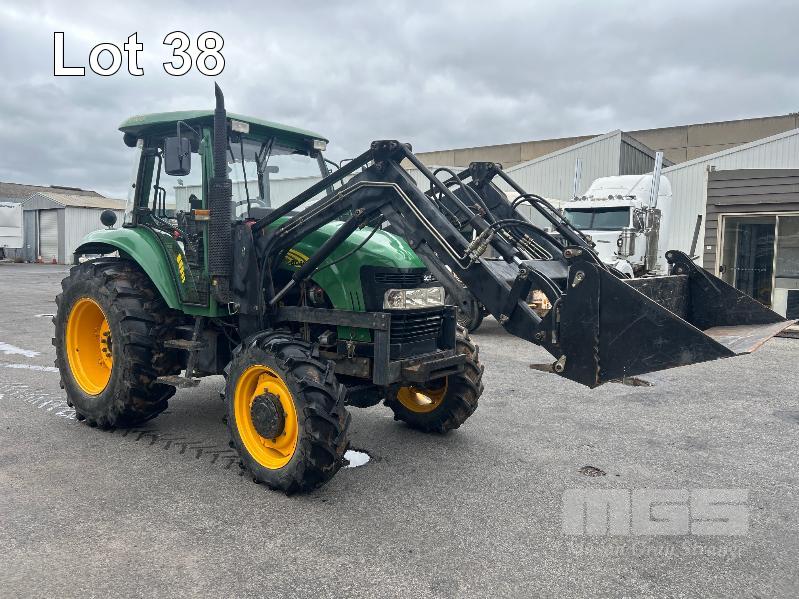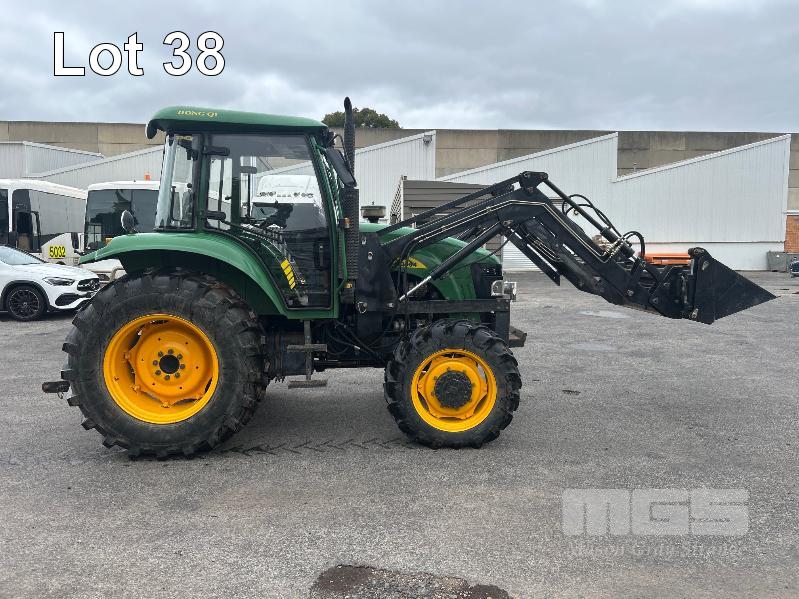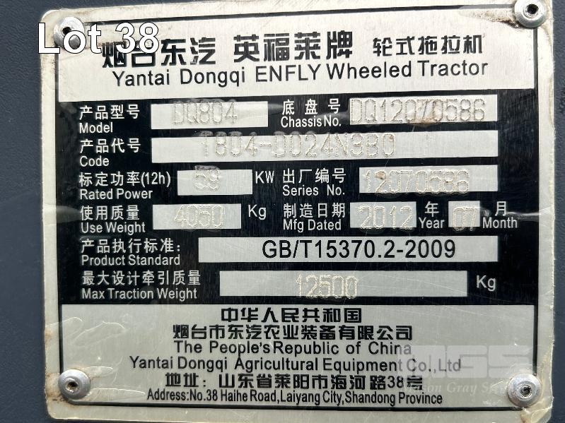 2012 TRACTOR FRONT END LOADER, YANTAI DONGQI MOD: ENFLY DQ804 REG: S87 SWR S/NO: DQ12070586 ENCLOSED A/C CABIN POWERED BY 4 CYLINDER DIESEL ENGINE, 59kw HOURS: 638 SHOWING MANUAL 4 SPEED HIGH & LOW PTO, 3PTL, HYDRAULICS 4 IN 1 BUCKET TYRE SIZE: 18.4-30 & 11.2-24 KEY #59