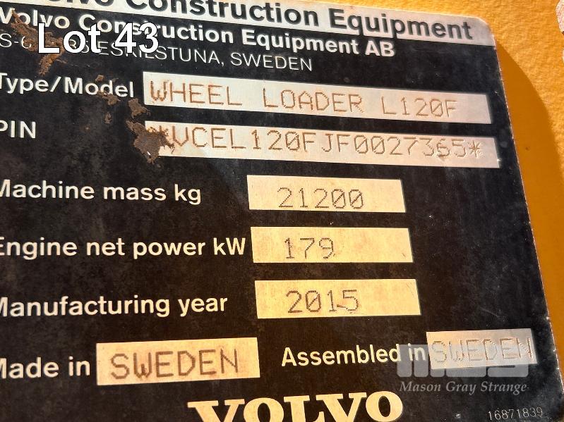 2015 VOLVO FRONT END LOADER, WHEELED,