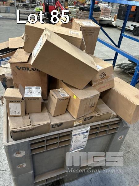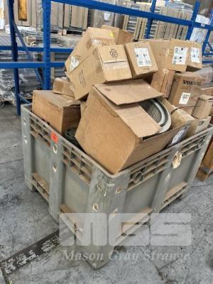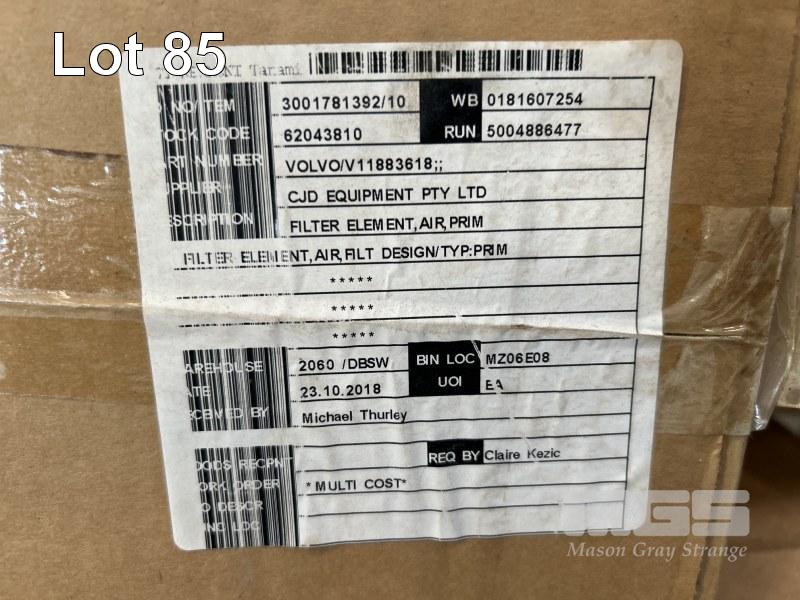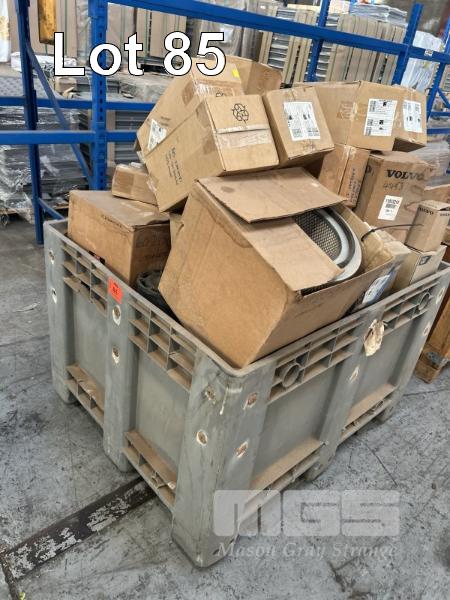 AIR, OIL & FUEL FILTERS ASSORTED TYPES SUIT CATERPILLAR, VOLVO, ETC INCLUDING PLASTIC POLY CRATE