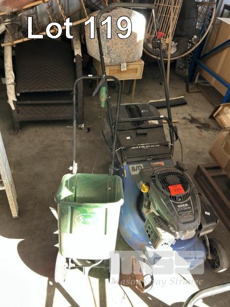 MASPORT 4 STROKE LAWN MOWER, 8/0 SERIES DOM: 2022, S/NO: 8750403, KOHLER XTX SERIES MOTOR WITH SCOTTS EASY GREEN SEED SPREADER