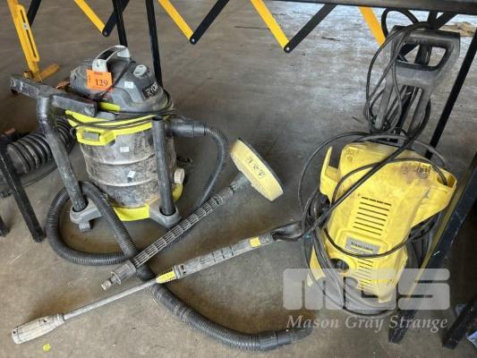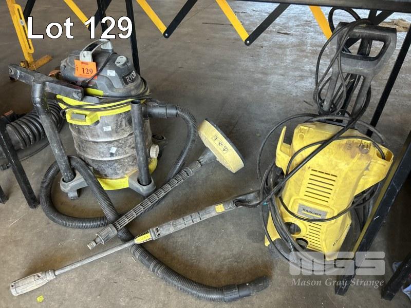 RYOBI WET DRY VACUUM, MOD: RBC1220 IG, 240V & PRESSURE WASHER, KARCHER MOD: K3 240V