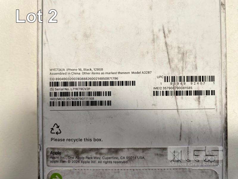 SMARTPHONE, APPLE iPHONE 16 5G 128GB BLACK, MYE73X/A (RRP $1,247) (BOXED) (SUBJECT TO INSURANCE CLAIM) S/N:SL7YKT9CV2P