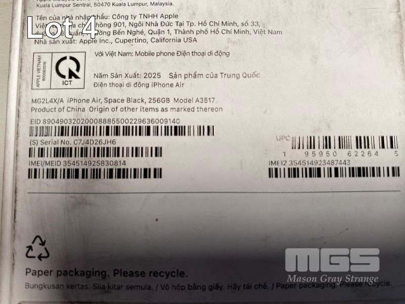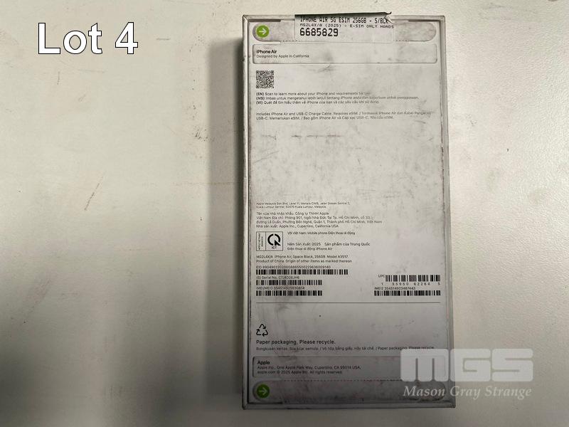 SMARTPHONE, APPLE iPHONE AIR 256GB SPACE BLACK, MG2L4X/A (RRP $1,799) (BOXED) (SUBJECT TO INSURANCE CLAIM) S/N:SC7J4D26JH6