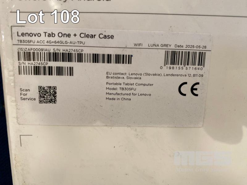 TABLET, LENOVO TAB ONE + CLEAR CASE, 64GB, 8.7 INCH, TB305FU (RRP $249) (BOXED) (SUBJECT TO INSURANCE CLAIM) S/N:HA2745CP