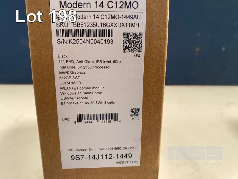 LAPTOP, MSI MODERN 14 C12MO-1449AU NBK BLACK, CORE i5 1235U, 16GB RAM, 512GB SSD, 14 INCH, WINDOWS 11 HOME