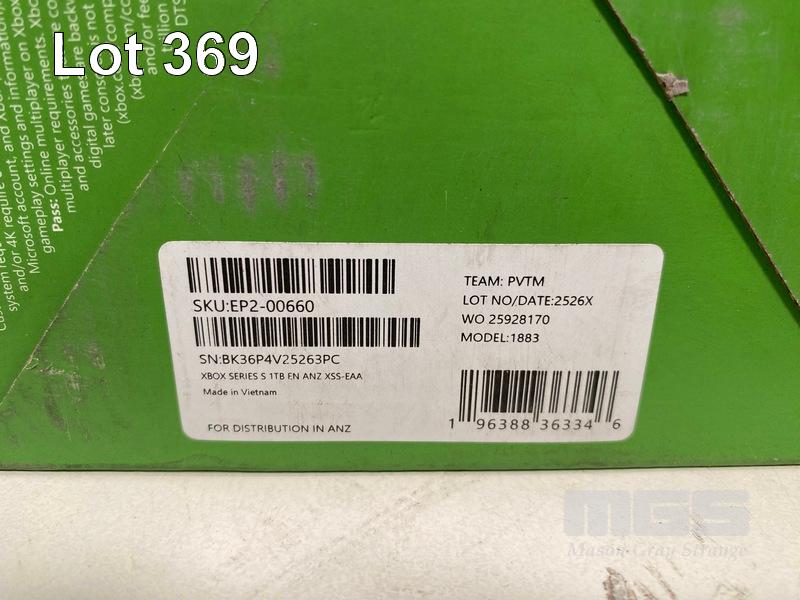 GAME CONSOLE, MICROSOFT XBOX SERIES S 1TB IN ROBOT WHITE, EP2-00660, MODEL 1883 (RRP $599) (BOXED) (SUBJECT TO INSURANCE CLAIM) S/N:BK36P4V25263PC