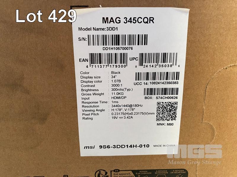 MONITOR, MSI 34 INCH MAG345CQR UWQHD 180HZ CURVED GAMING