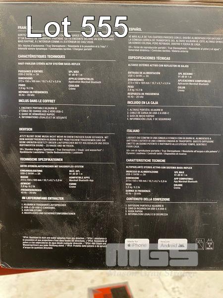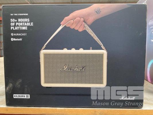 SPEAKER, MARSHALL KILBURN III PORTABLE BLUETOOTH, CREAM (RRP $595) (BOXED) (SUBJECT TO INSURANCE CLAIM)