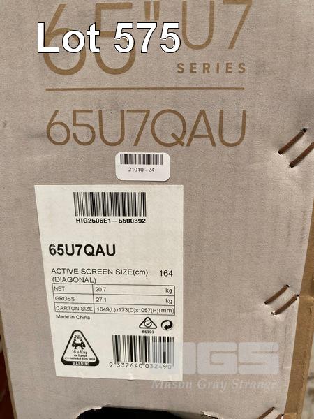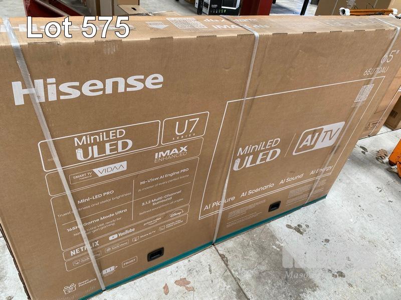 TV, HISENSE 65 INCH, 4K ULED MINI LED, 65U7QAU (RRP $1,699) (BOXED) (SUBJECT TO INSURANCE CLAIM) S/N:HIG2506E1-5500392