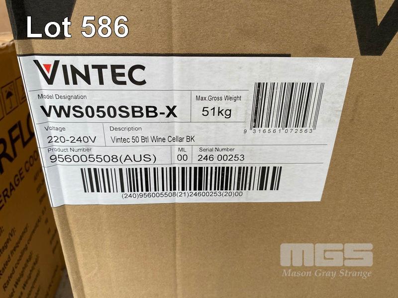 WINE CABINET, VINTEC 50 BOTTLE SINGLE ZONE, BLACK GLASS, VWS050SBB-X (RRP $1,999) (BOXED) (SUBJECT TO INSURANCE CLAIM) S/N:24600253