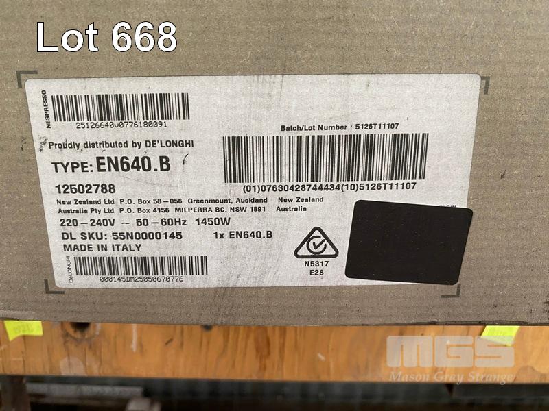 COFFEE MACHINE, DELONGHI NESPRESSOR GRAN LATTISSIMA, EN640.B (RRP $699) (BOXED) (SUBJECT TO INSURANCE CLAIM) S/N:000145DM25050670776