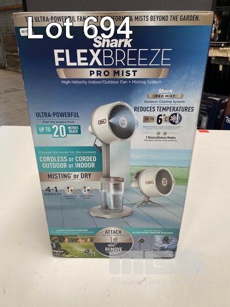 FAN, SHARK FLEXBREEZE PRO MIST HIGH-VELOCITY FAN & MISTING SYSTEM, FA302WHANZ (RRP $399) (BOXED) (SUBJECT TO INSURANCE CLAIM)
