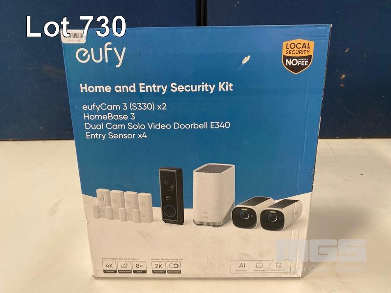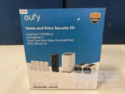 HOME & ENTRY SECURITY KIT, EUFY EUFYCAM3 (S330) X2, HOMEBASE 3, DUAL CAM SOLO VIDEO DOORBELL E340, ENTRY SENSORX4