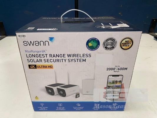 SECURITY SYSTEM, SWANN MAXRANGER4K SOLAR WITH LONGEST RANGE WIRELESS (RRP $1,198) (BOXED) (SUBJECT TO INSURANCE CLAIM) S/N:141410206242026