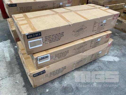 ASHER II 5-PIECE OUTDOOR CORNER LOUNGE/DINING SETTING, POWDER COATED STEEL, RESIN WICKER FRAME, TABLE 145 x 80cm, B05-87845 (RRP $2,199) (BOXED) (SUBJECT TO INSURANCE CLAIM)