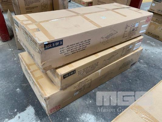 ASHER II 5-PIECE OUTDOOR CORNER LOUNGE/DINING SETTING, POWDER COATED STEEL, RESIN WICKER FRAME, TABLE 145 x 80cm, B05-87845 (RRP $2,199) (BOXED) (SUBJECT TO INSURANCE CLAIM)