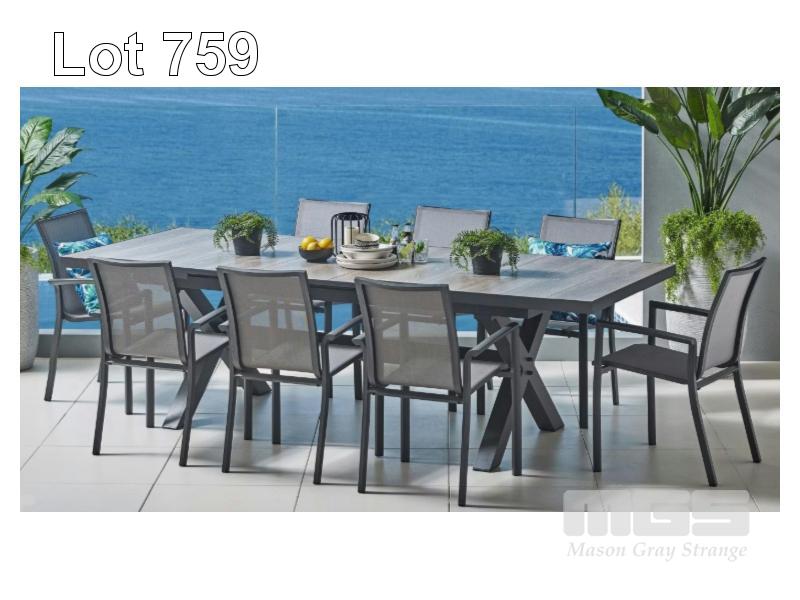 SULTAN 9-PIECE OUTDOOR RECTANGULAR EXTENSION DINING SETTING, ALUMINIUM FRAMING, CERAMIC TILE TABLETOP, GUNMETAL, TABLE 203-263 x 103cm, 79846 (RRP $2,799) (BOXED) (SUBJECT TO INSURANCE CLAIM)