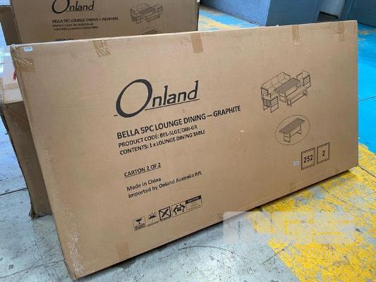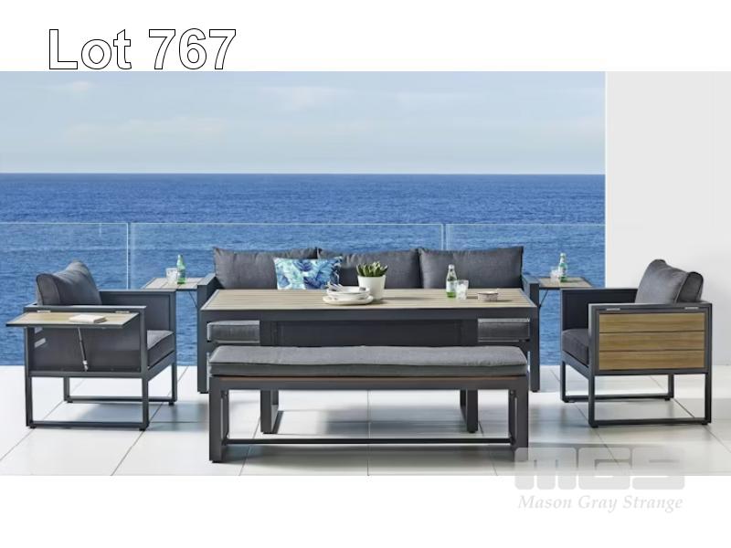 BELLA 5-PIECE OUTDOOR LOUNGE/DINING SETTING - GRAPHITE, POWDER-COATED ALUMINIUM FRAMES & POLYWOOD ACCENTS, TABLE 175 x 85cm, BEL-5LGE/DIN-GR (RRP $3,699) (BOXED) (SUBJECT TO INSURANCE CLAIM)