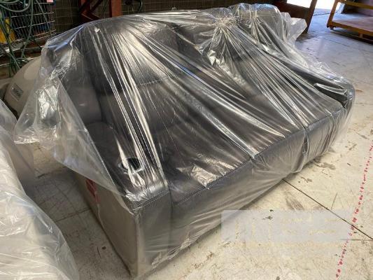 BURLINGTON FABRIC POWERED RECLINER SOFA 3 SEATER - STEEL BLUE, HEAT & AIR MASSAGE (RRP $4,999) (SUBJECT TO INSURANCE CLAIM)