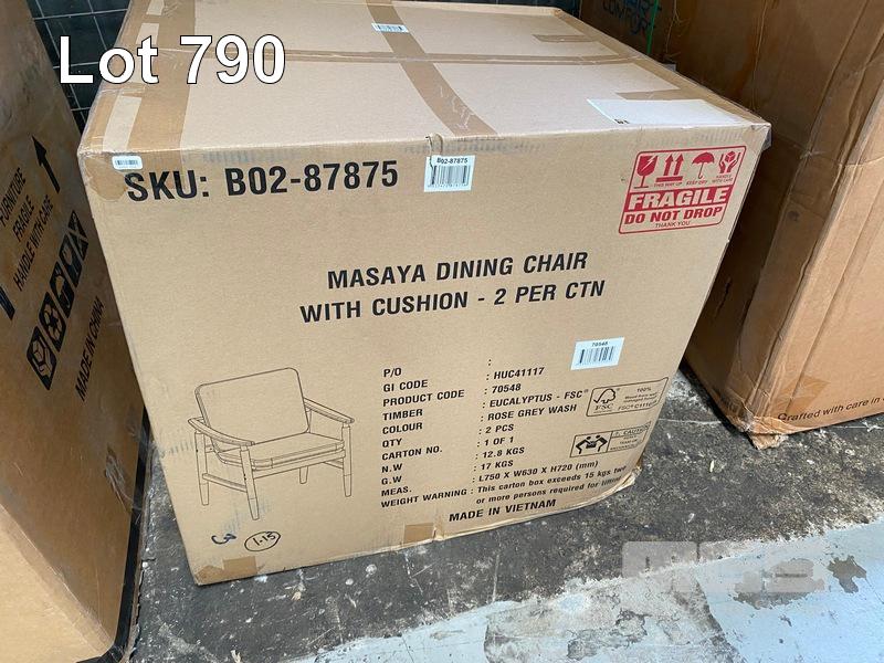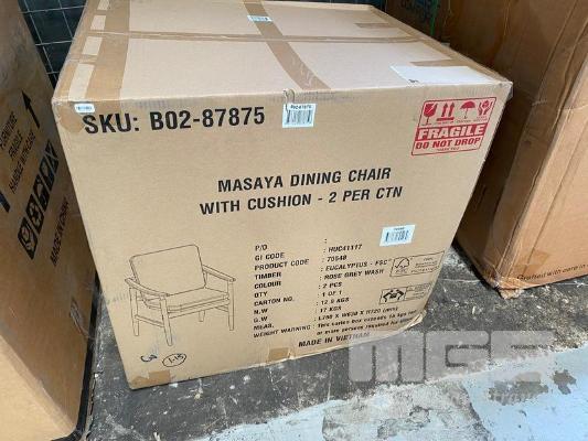 2 x MASAYA DINING CHAIRS WITH CUSHION, EUCALYPTUS TIMBER FRAMING, B02-87875
