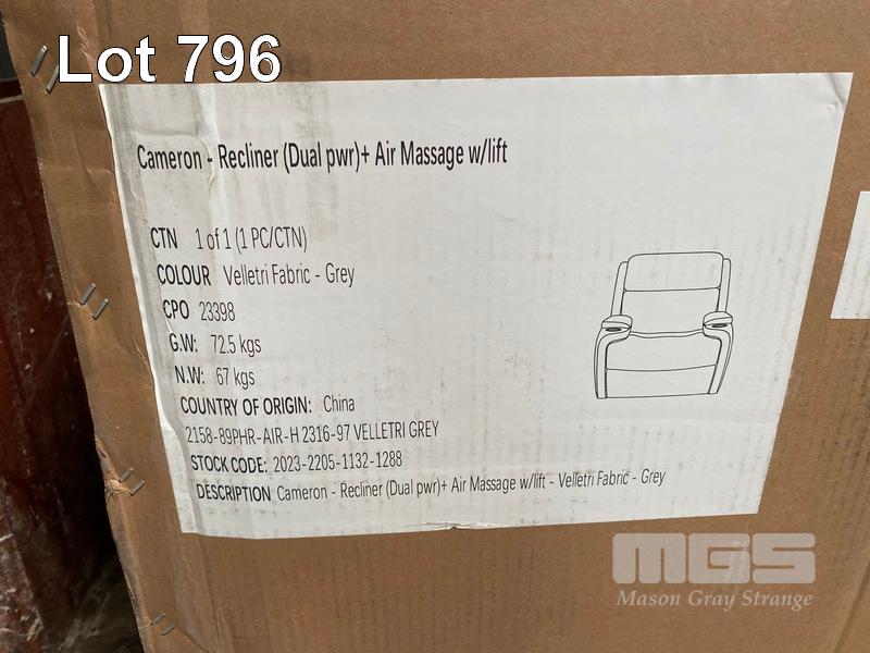 CAMERON FABRIC DUAL MOTOR LIFT CHAIR, GREY WITH AIR MASSAGE