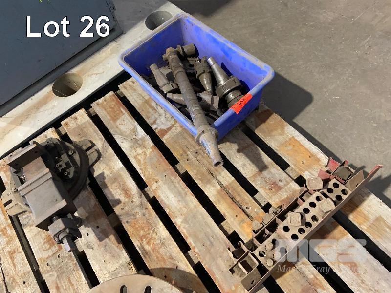 ASSORTED MILLING TOOLING, COLLET HOLDERS, FACE CUTTER, HORIZONTAL CUTTERS, HORIZONTAL BAR, CLAMPING BOLTS & SWIVEL BASE VICE, 4"