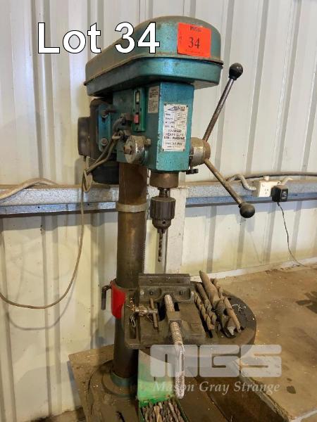 BENCH DRILL, HERLESS 12 SPEED No 2 M/T 240V, 5" VICE & DRILL BITS