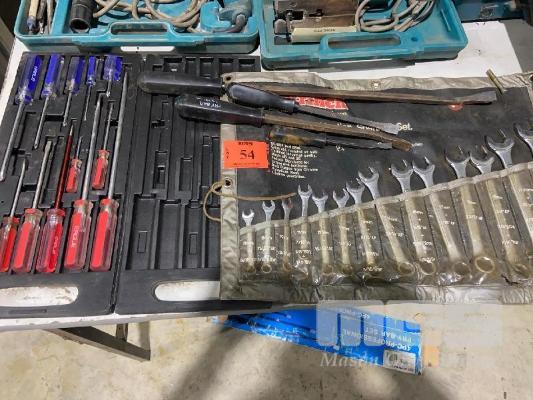 RING/OPEN END SPANNER SET, 14 PIECE, EAGLE SCREW DRIVER SET & CP 1/2 PNEUMATIC IMPACT WRENCH , PRY BARS.