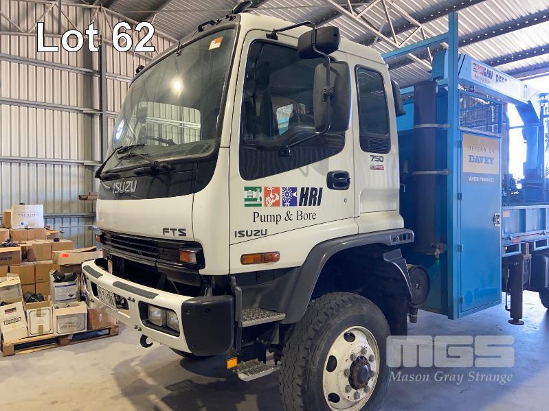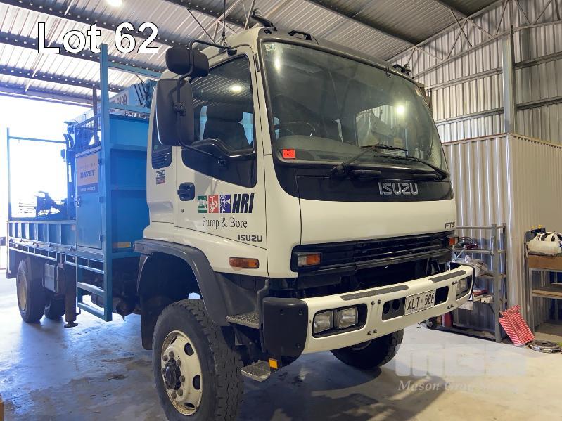 2006 ISUZU 750 F3FTS 4x4 TRUCK REG: XLT 586 VIN: JALFTS34H67000050 ODO: 93,690kms APPROX GVM: 13,000kg 6 SPEED MANUAL TRANSMISSION, 3 SEAT, SITEC 220 TURBO INTERCOOLER SPECIALTY TRAY & CRANE FITOUT CABLE WINCH TADANO CRANE S/NO: 411-202-10090 3230kg @ 3.7m 1280kg @ 8.17m TRAY: 4800 x 2400mm APPROX DUAL STORAGE COMPARTMENTS DUAL FUEL TANKS 2 WAY RADIO PHONE KIT (WITH SERVICE BOOKS)