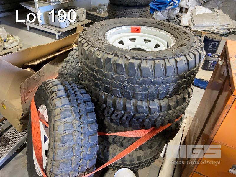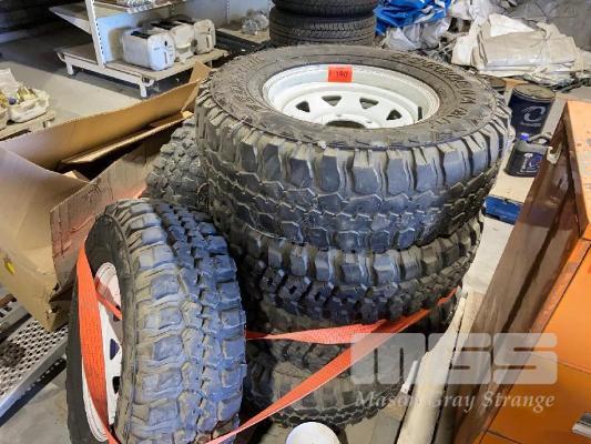 5 x 5 STUD RIMS, WHITE, WITH FEDERAL COURAGIA M/T TYRES, LT 265/75R/16 & NUITS