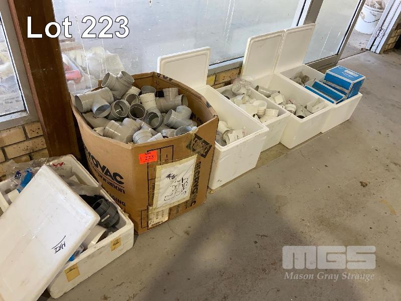 6 x BOXES STORMWATER FITTINGS, INCLUDES PVC PIPE FITTINGS & STEEL BRACKETS