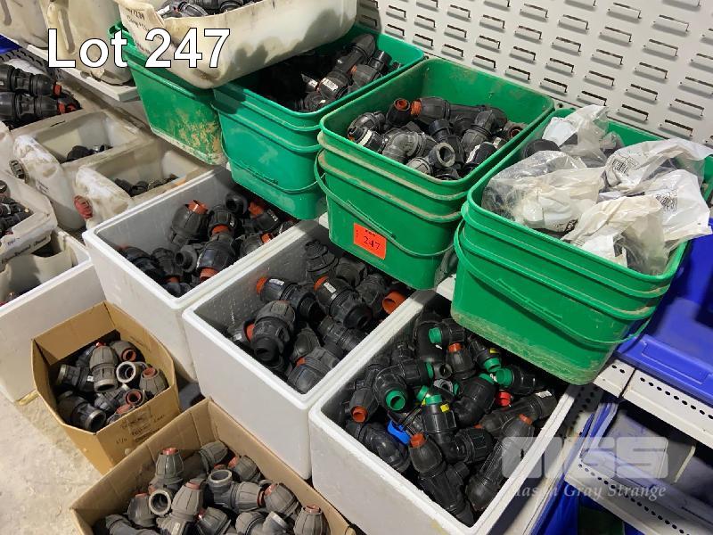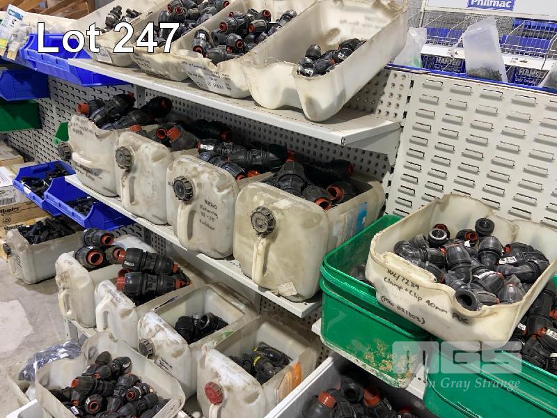 40 (APPROX) x PIECES POLY PIPE FITTINGS, ELBOWS, COUPLERS, TEES, ETC 25 x TUBS