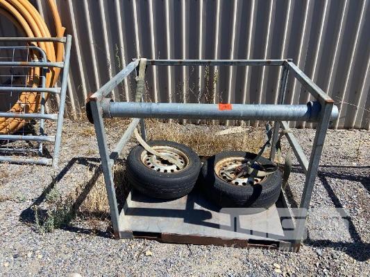 FORKLIFT CAGE, 1200 x 1000 x 1100mm (H), SUIT GAS BOTTLES, 2 x RIMS & TYRES