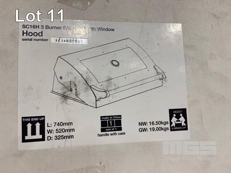 16 x STAINLESS STEEL BBQ HOODS WITH TEMP GAUGE, 470 (L) x 520 (W) x 325mm (D), NEW