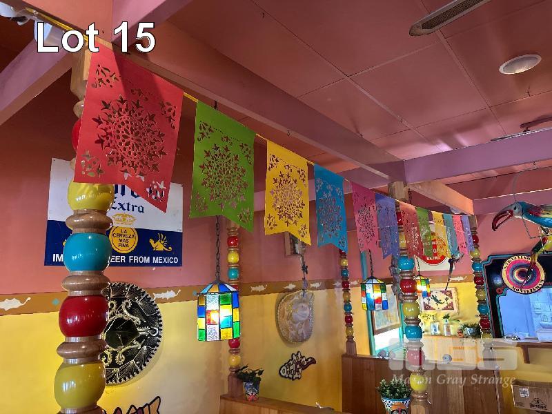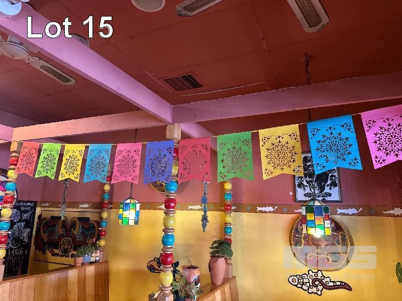 4 x HANGING CLOTH BANNERS & ALL MEXICAN & DECORATIVE FLAGS ON STRING