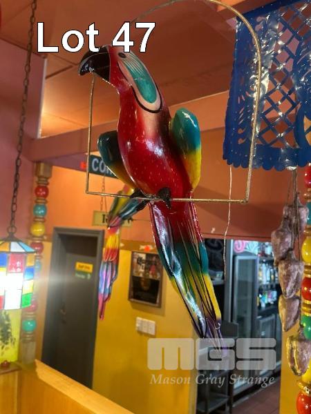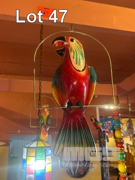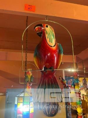 PAIR VINTAGE MEXICAN HANGING PARROTS, MADE IN MEXICO