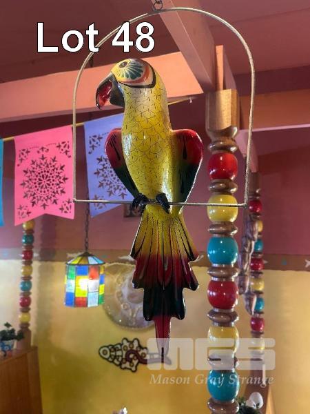 PAIR VINTAGE MEXICAN HANGING PARROTS, MADE IN MEXICO