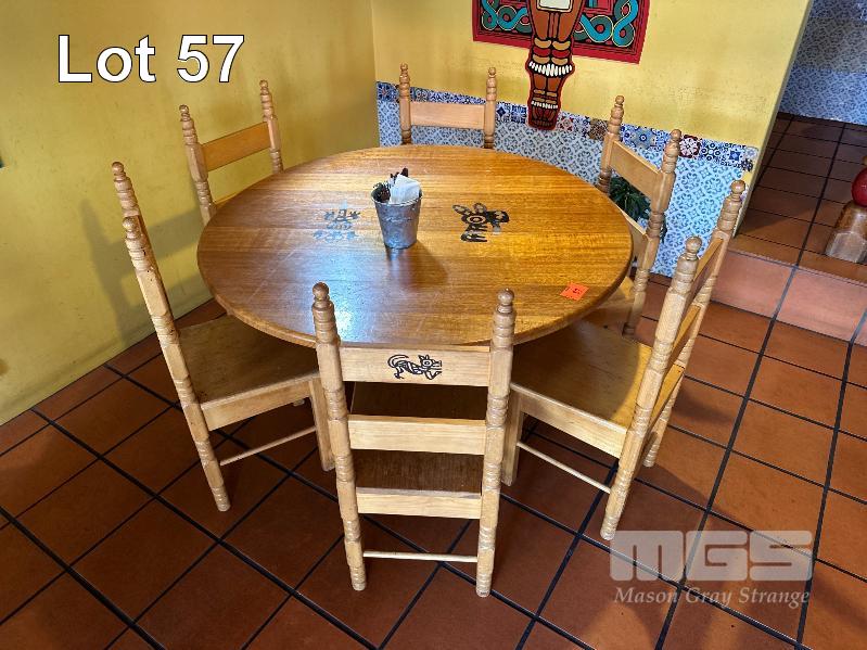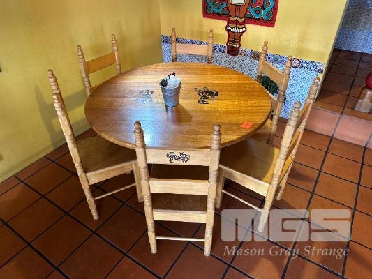 CIRCULAR SOLID TIMBER TABLE, 1320mm (D) WITH 6 x SOLID TIMBER CHAIRS