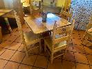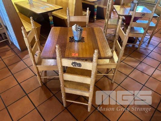 PAIR SOLID TIMBER TABLES, 870 x 870mm WITH 8 x SOLID TIMBER CHAIRS