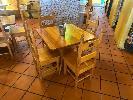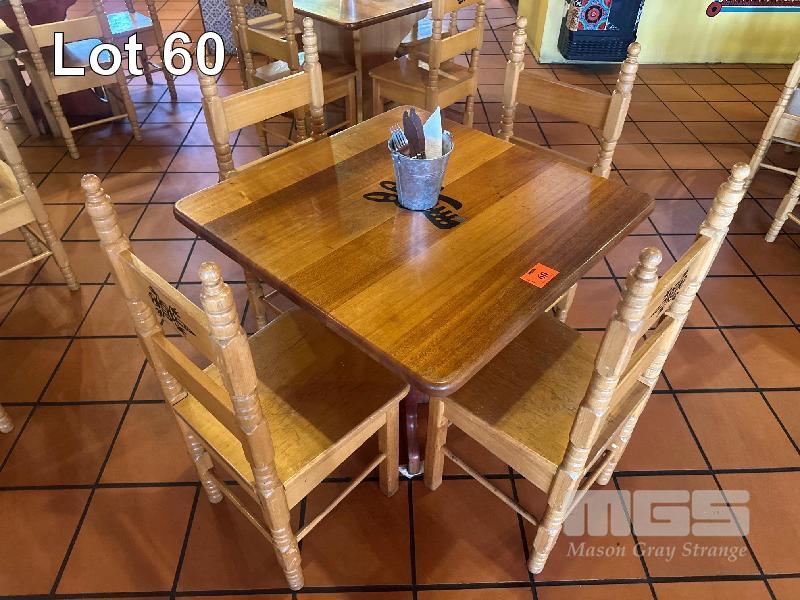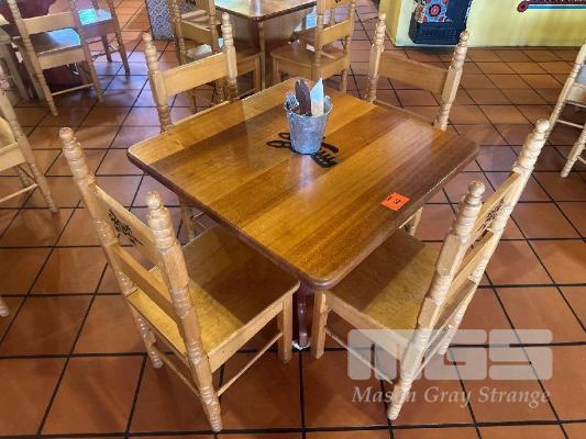 3 x SOLID TIMBER TABLES, 870 x 870mm WITH 8 x SOLID TIMBER CHAIRS