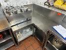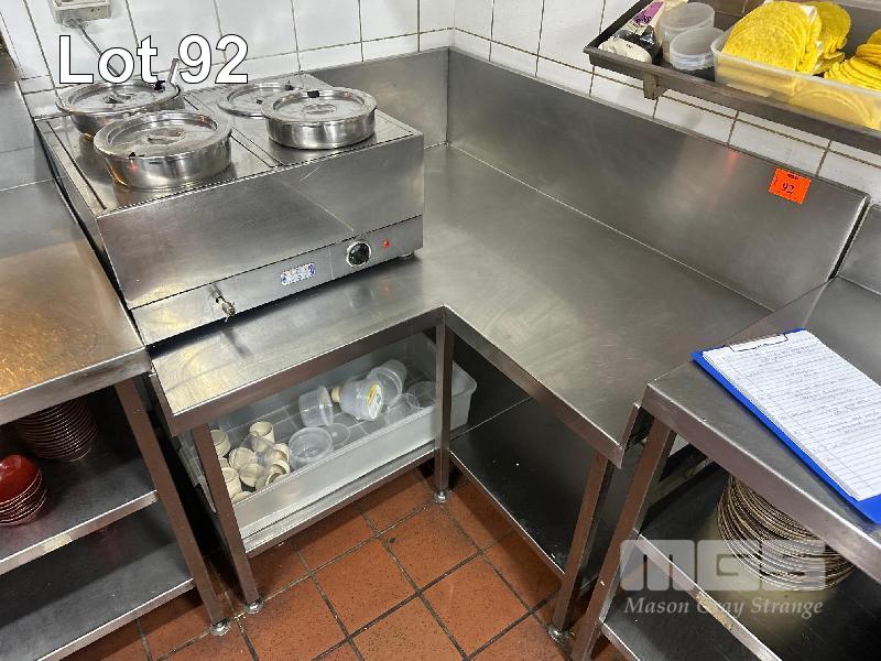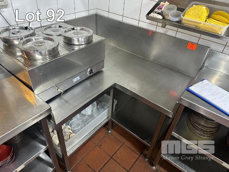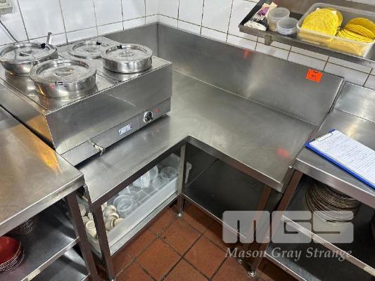 STAINLESS STEEL CORNER BENCH, 1200 x 1500 x 760mm (H) WITH LARGE SPLASHBACK