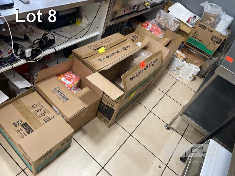 LARGE QTY TAKEAWAY CONTAINERS, PAPER TOWELS, GLOVES ETC.