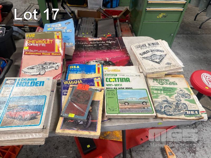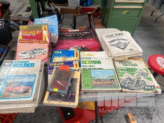 13 (APPROX) x VINTAGE WORKSHOP MANUALS INCLUDING FORD FALCON/FAIRLANE, XF-FE, HARLEY DAVIDSON, FLT/FXR/FXS, HOLDEN, YAMAHA, ETC