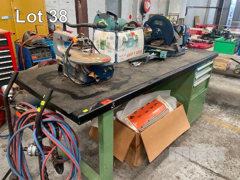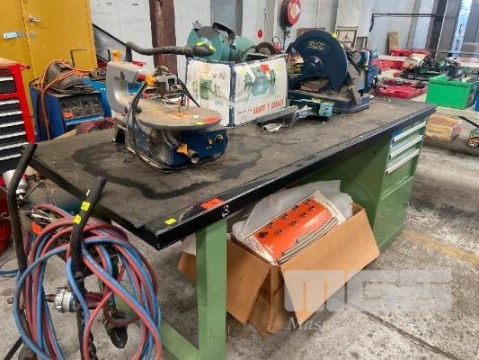 STEEL WORK BENCH, 2000 x 800 x 890mm WITH UNDERBENCH CABINET, 4 DRAWER