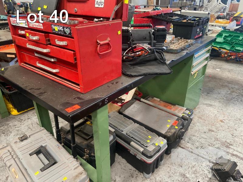 STEEL WORK BENCH, 2000 x 800 x 890mm WITH UNDERBENCH CABINET, 4 DRAWER