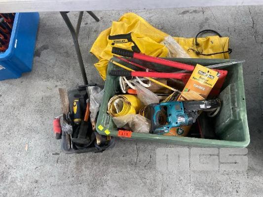 ASSORTED TOOLS, MAKITA NAIL GUN, SAW, TROWEL, ETC 1 x BOX