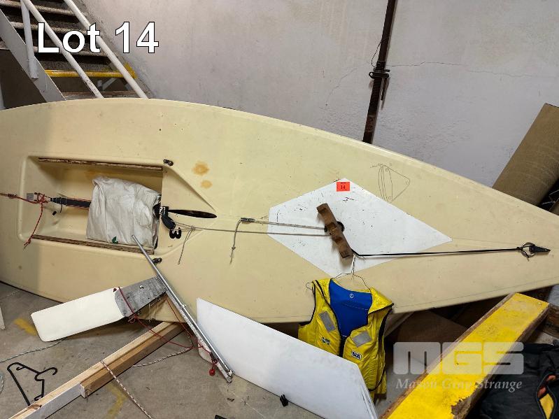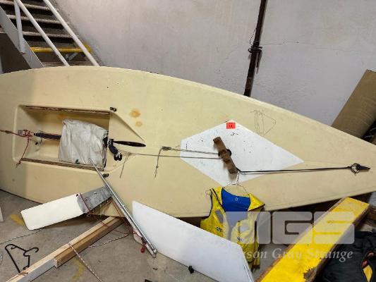 LASER SAILING BOAT 4M WITH RUDDER CENTER BOARD, MISSING MAST
