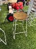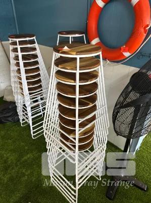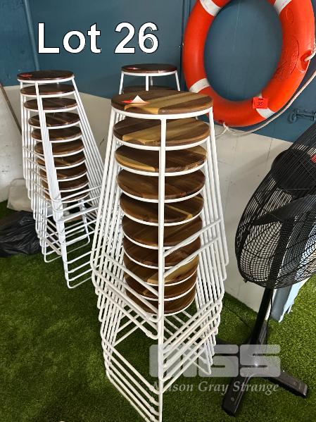 10 x TIMBER TOP BAR STOOLS, WHITE STEEL FRAME, STACKABLE, 700mm