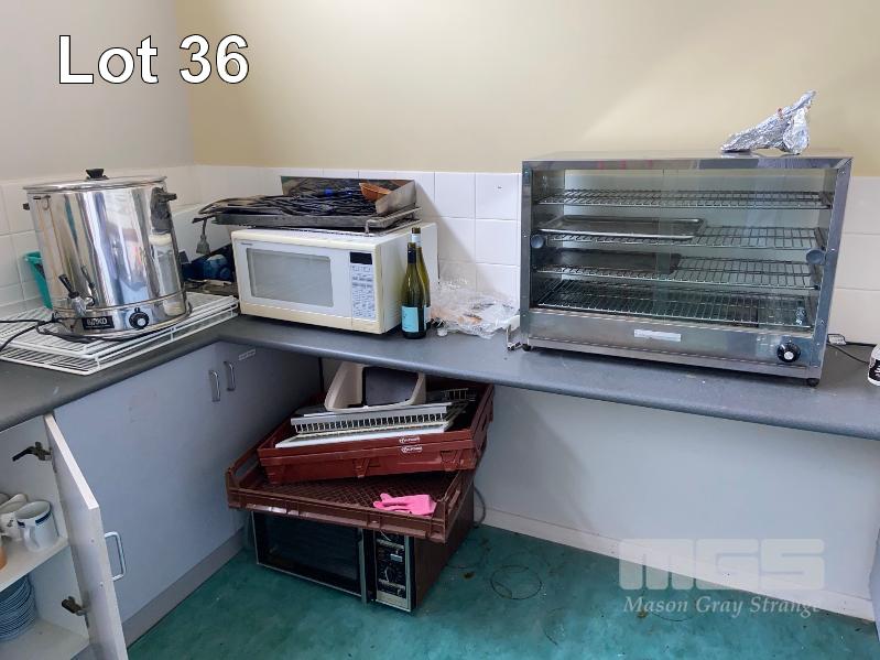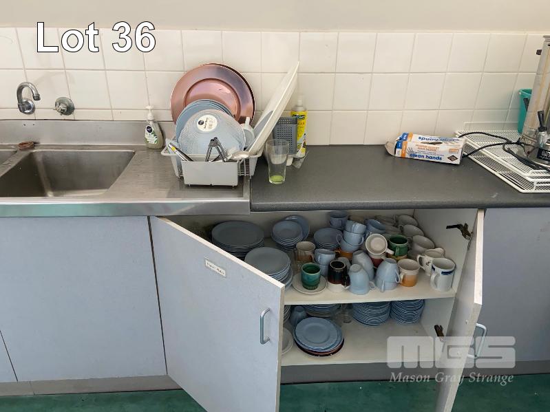 CONTENTS OF KITCHEN INCLUDING SAMSUNG FRIDGE/FREEZER, WESTING HOUSE FRIDGE,FREEZER, KEVLINATOR, FREEZER BIRKO HOT WATER URN, WOODSON PIE WARMER, SUNBEAM, HOTPLATE VARIOUS PLATES, CUPS, BOWLS & KITCHEN SUNDRIES
