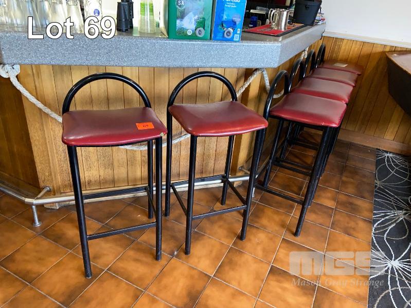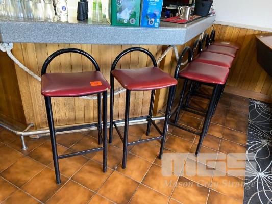6 x RED VINYL TOP, STEEL FRAME BAR STOOLS